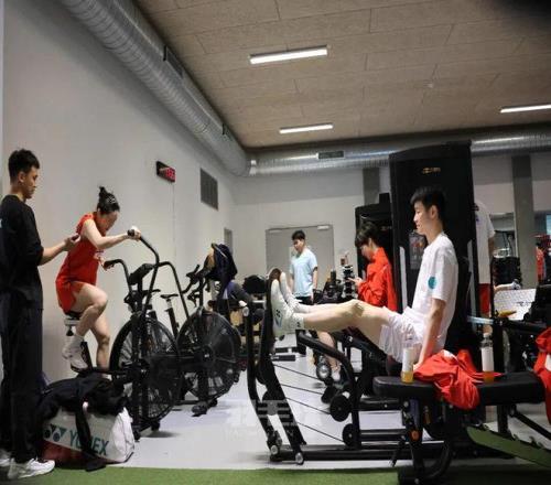 本次比赛的场馆处在霍森斯论坛园区中,比赛馆本身并不大,训练场地、力量室等功能区都分布在周边若干个小场馆里。除了适应比赛场地,国羽今天还对场馆的路线、功能区分布等进行了熟悉,并进行了相应的力量训练。