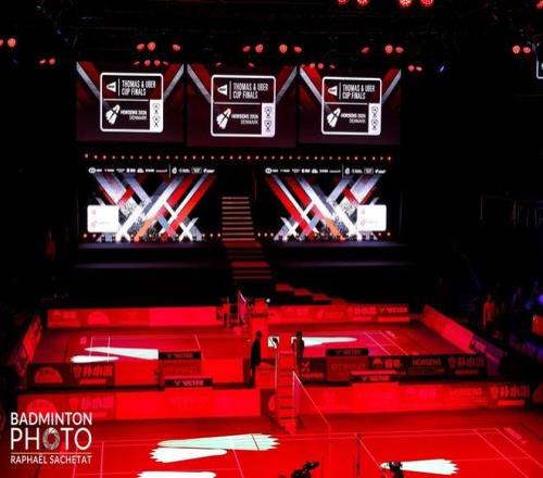 到达丹麦霍森斯的第七天,中国羽毛球队迎来本届汤尤杯的首秀,且男团和女团是同时作战。由于是今天早场比赛,双方根据规定在前一天晚上交换名单,国羽召开了赛前动员会并做好出场部署,上场队员根据各自场次分别做好赛前准备。